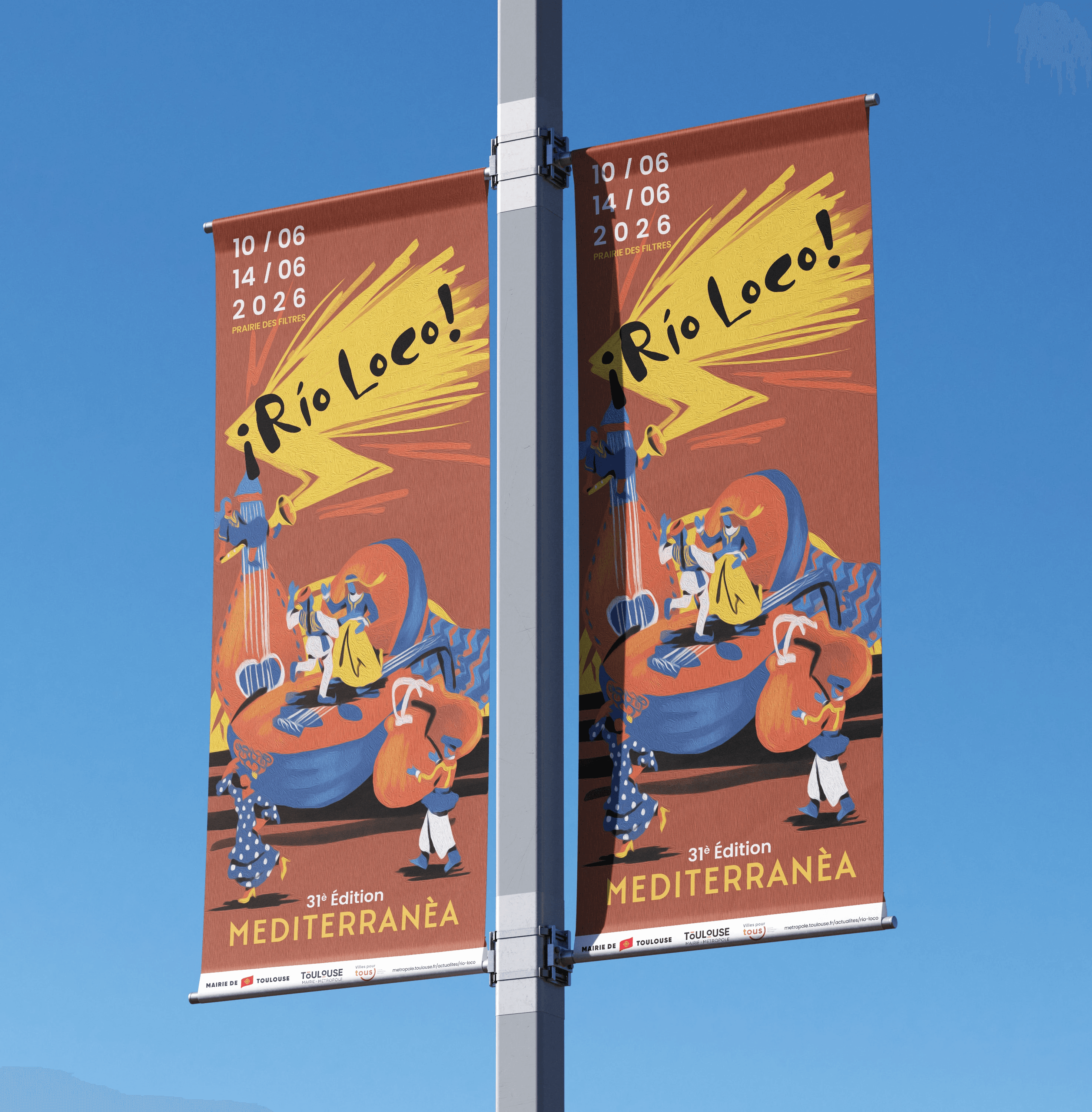 Création de deux propositions d’affiches pour l’édition 2026 du festival de musique ¡Rio Loco!, avec pour thème : Méditerranéa.